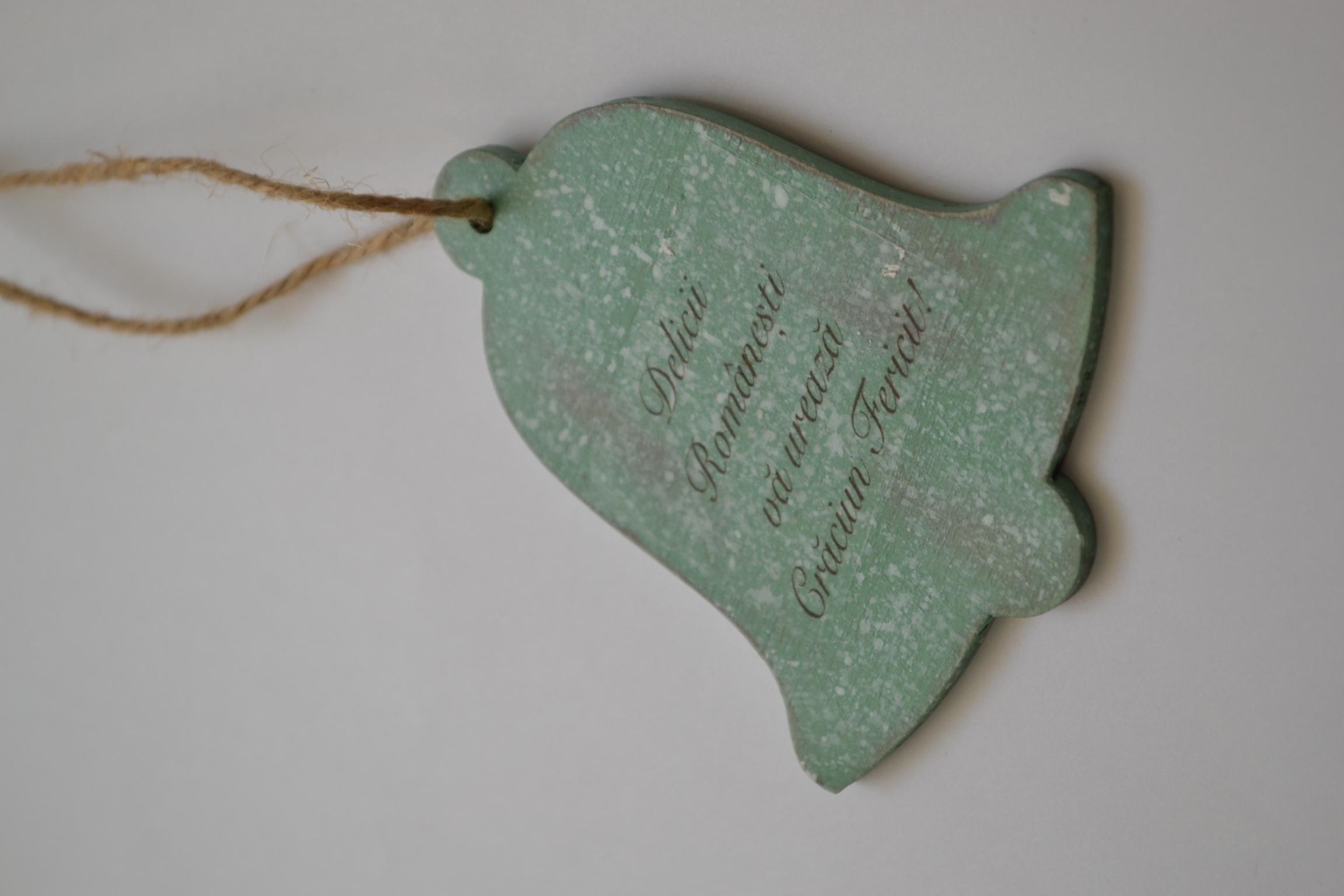 Clopotelul este din lemn, iar decorarea s-a realizat cu vopsele acrilice si tehnica decoupage.