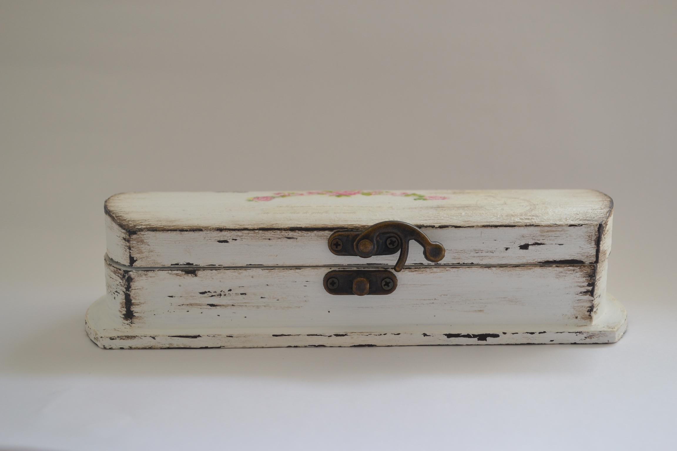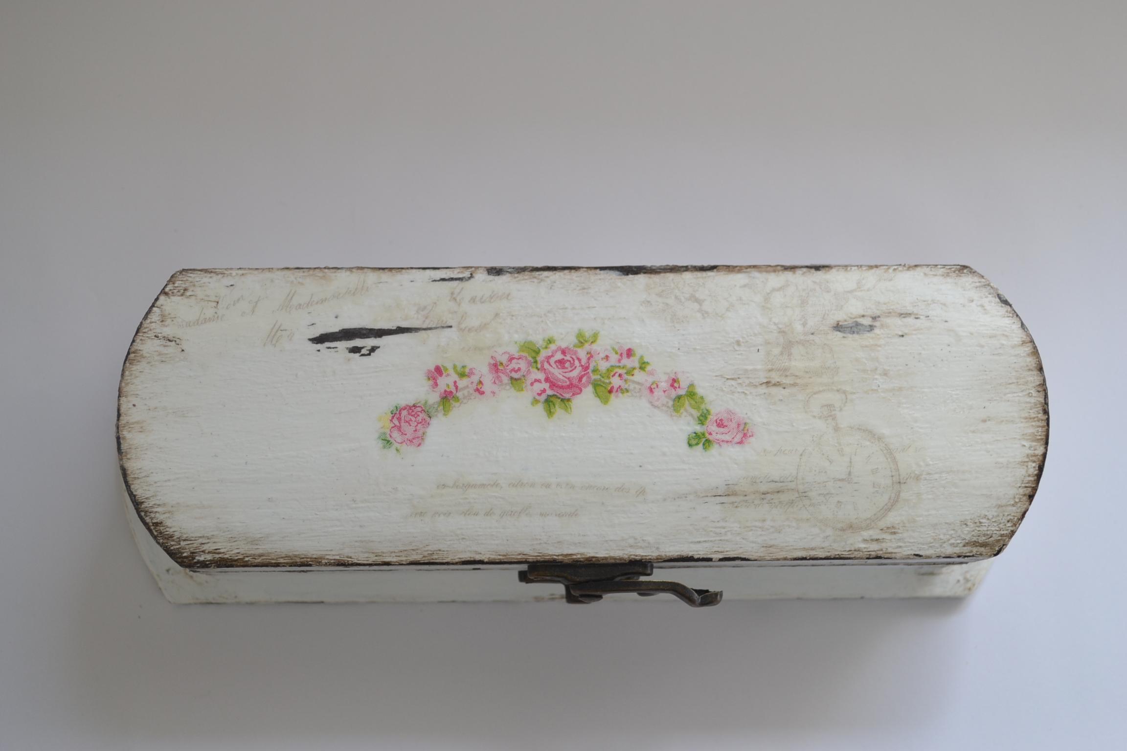 Produsul este din lemn, antichizat, decorat cu vopsele acrilice si tehnica decoupage.