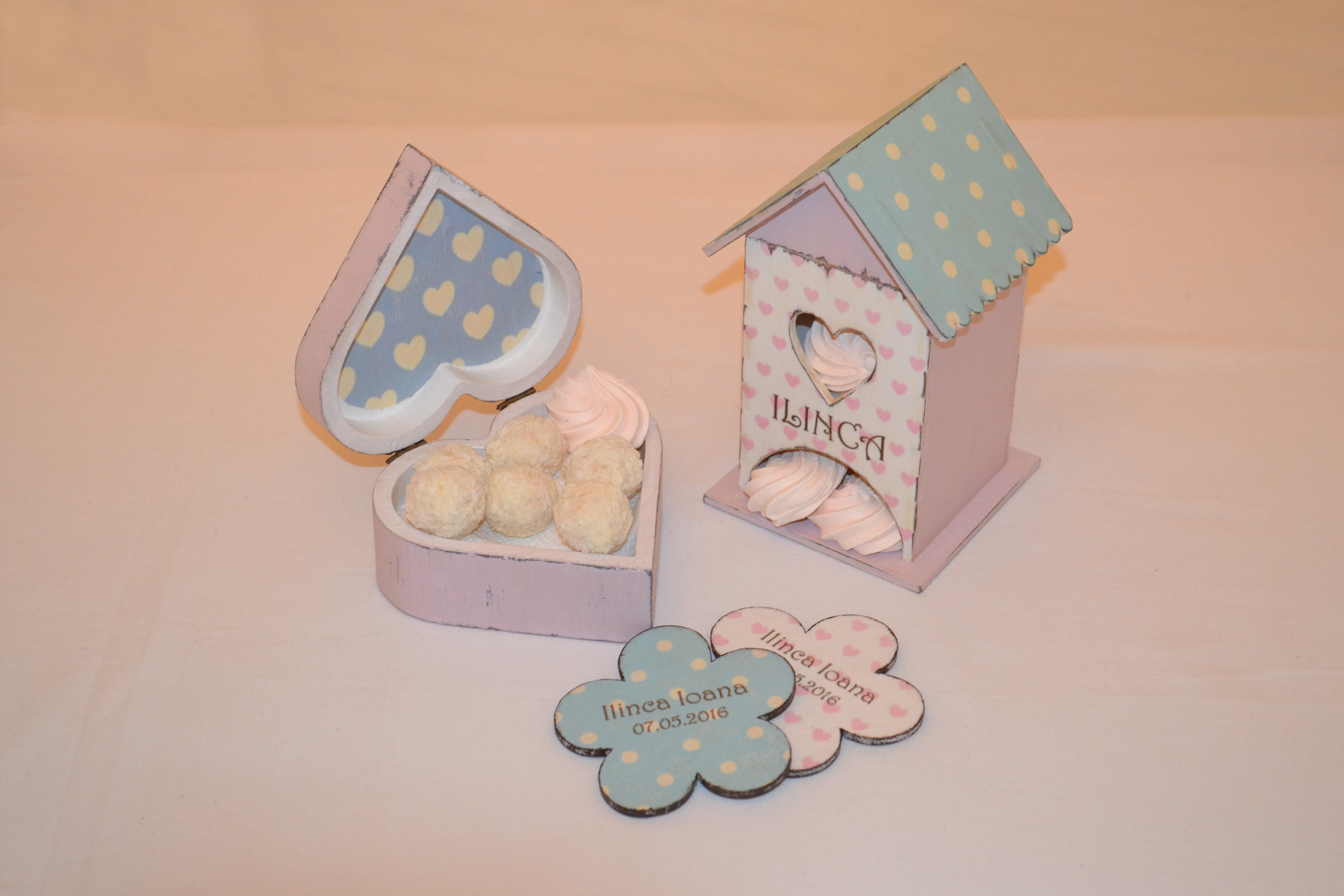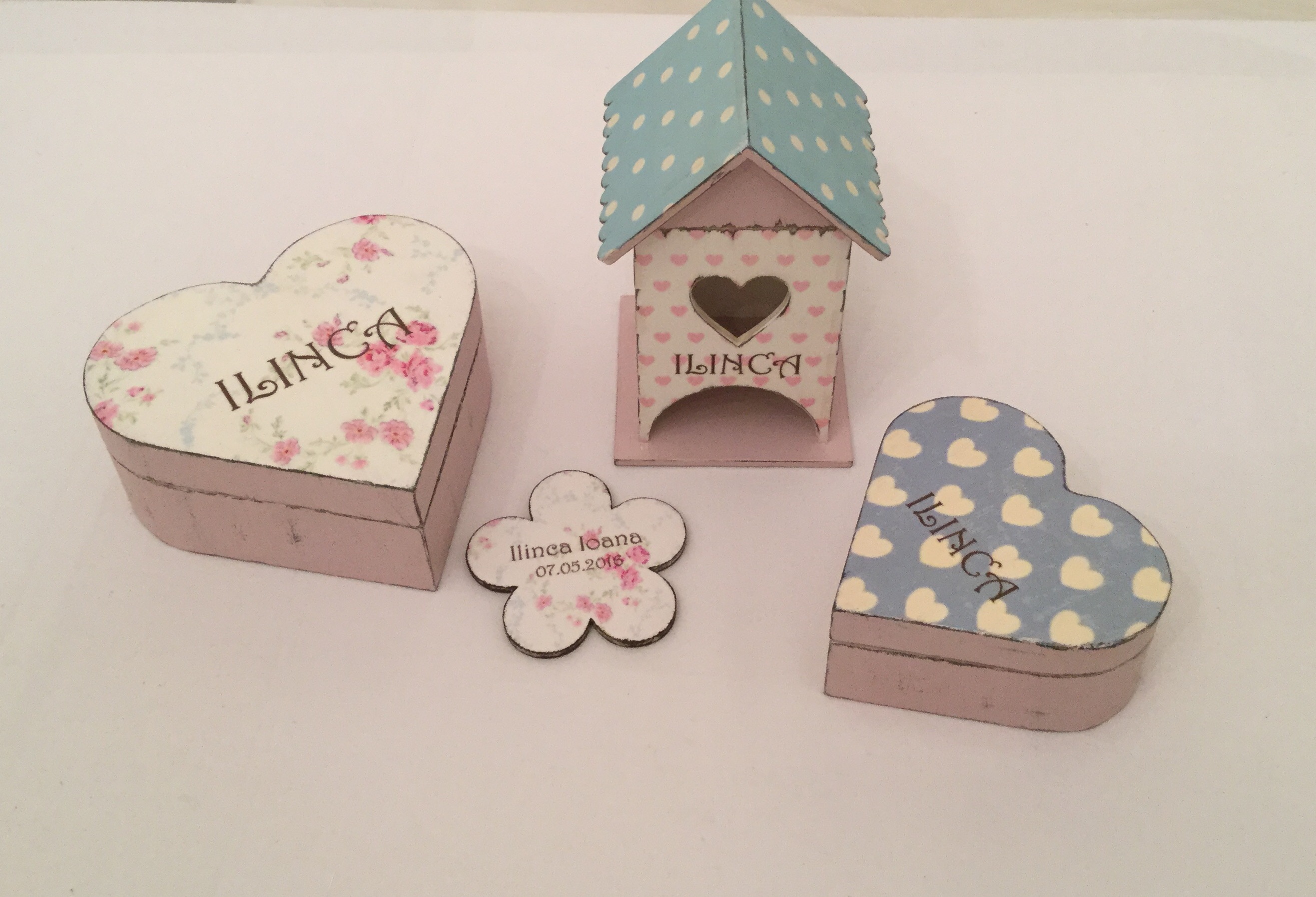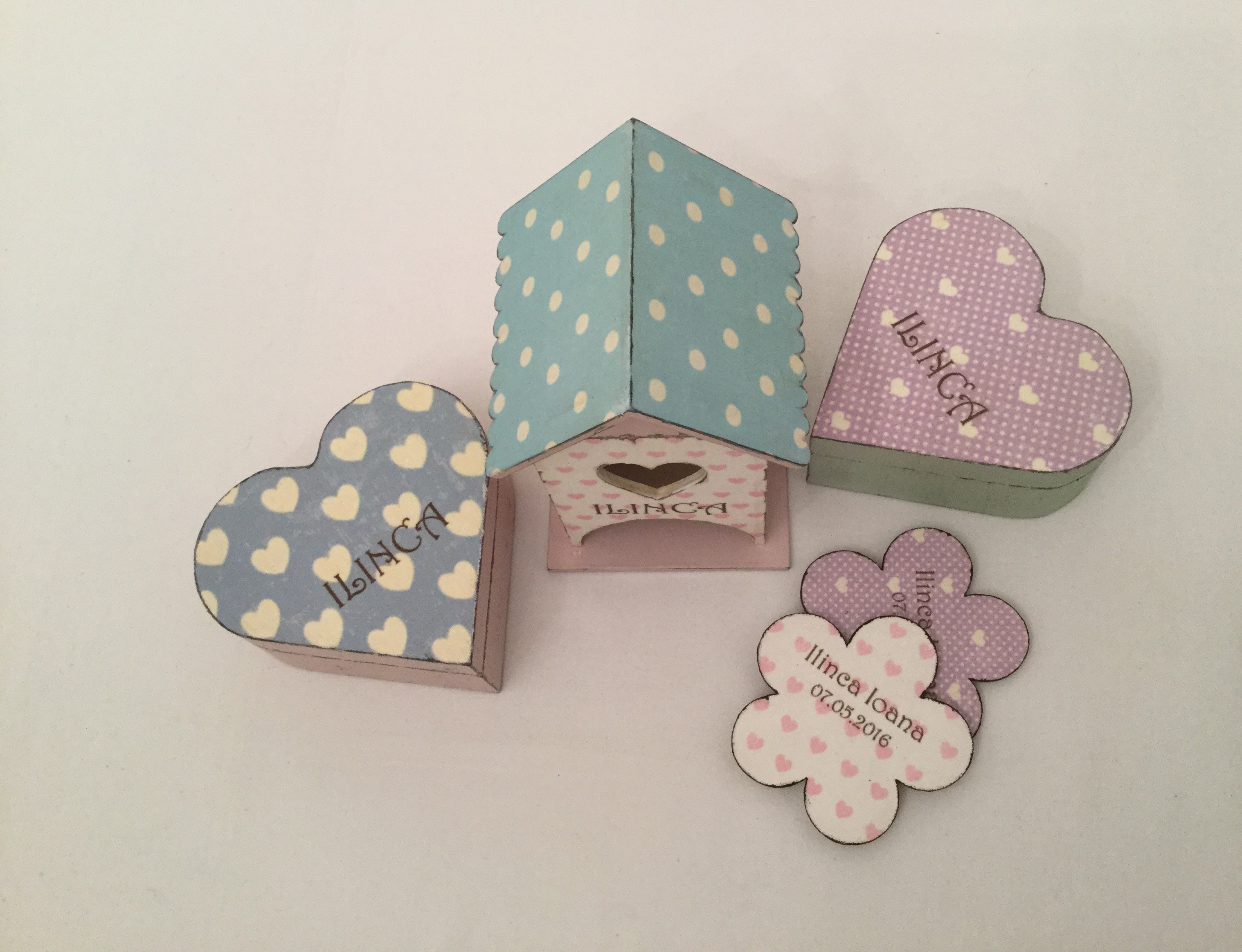 Personalizarea se face cu numele copilului pe capacul exterior al cutiei.